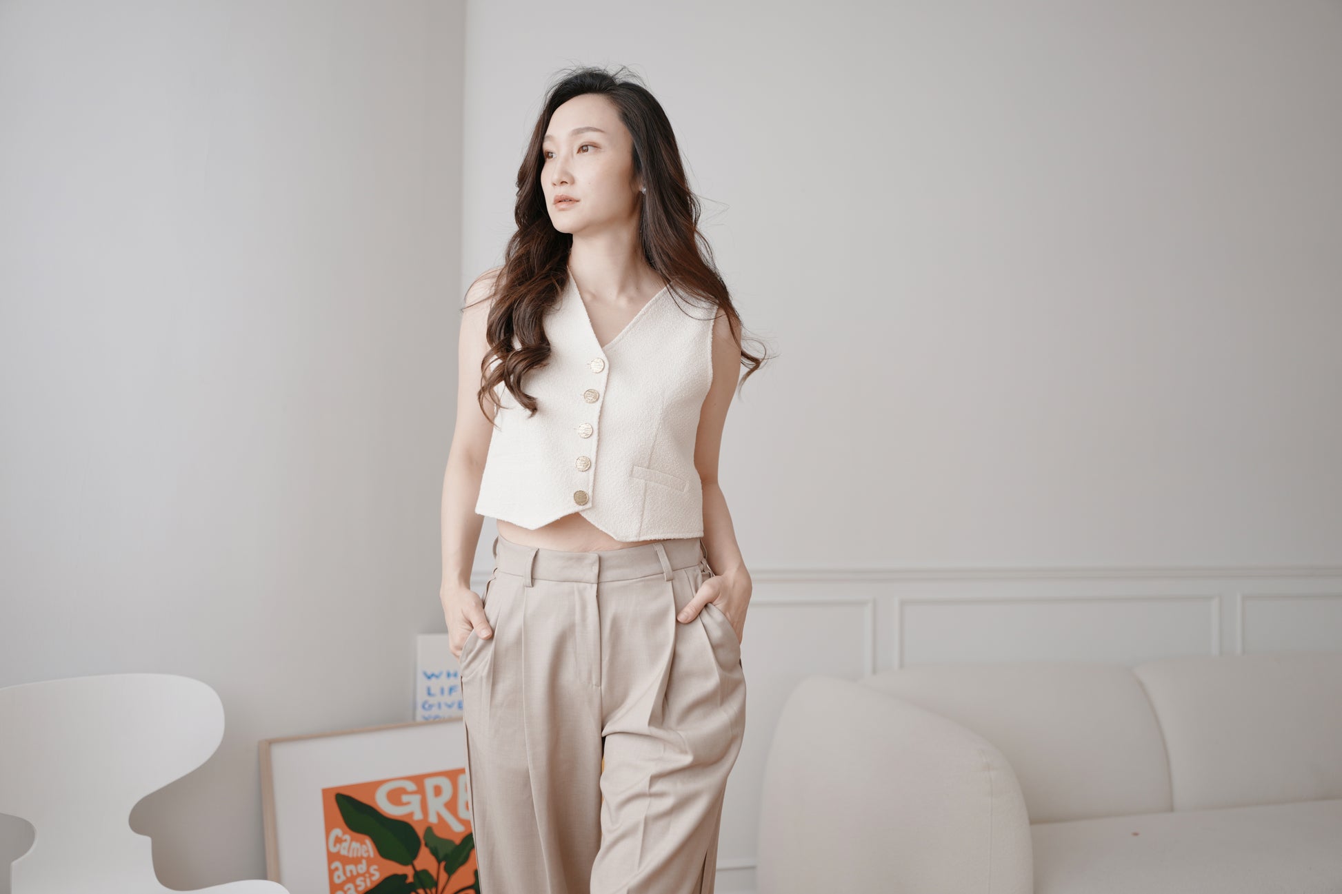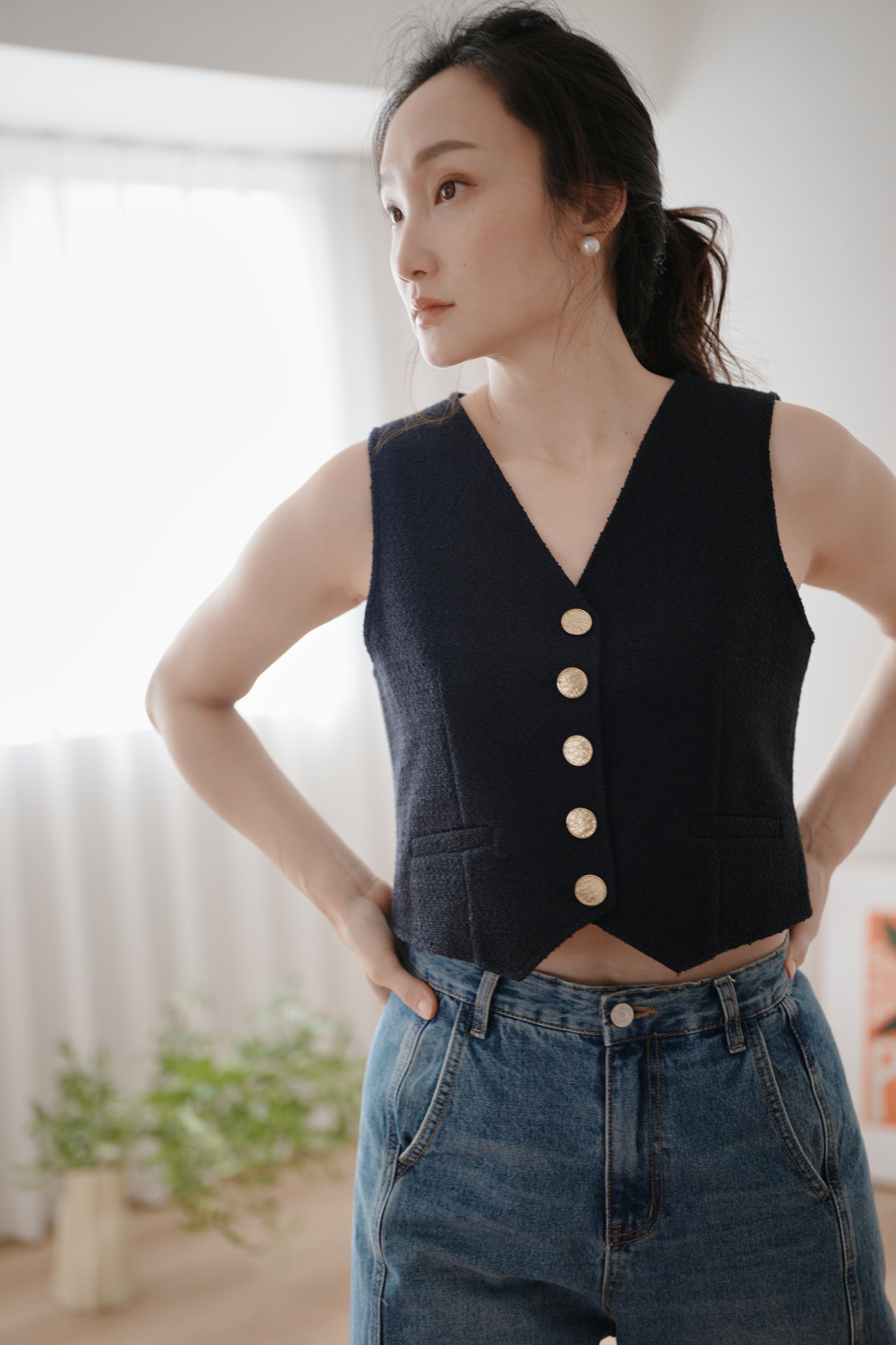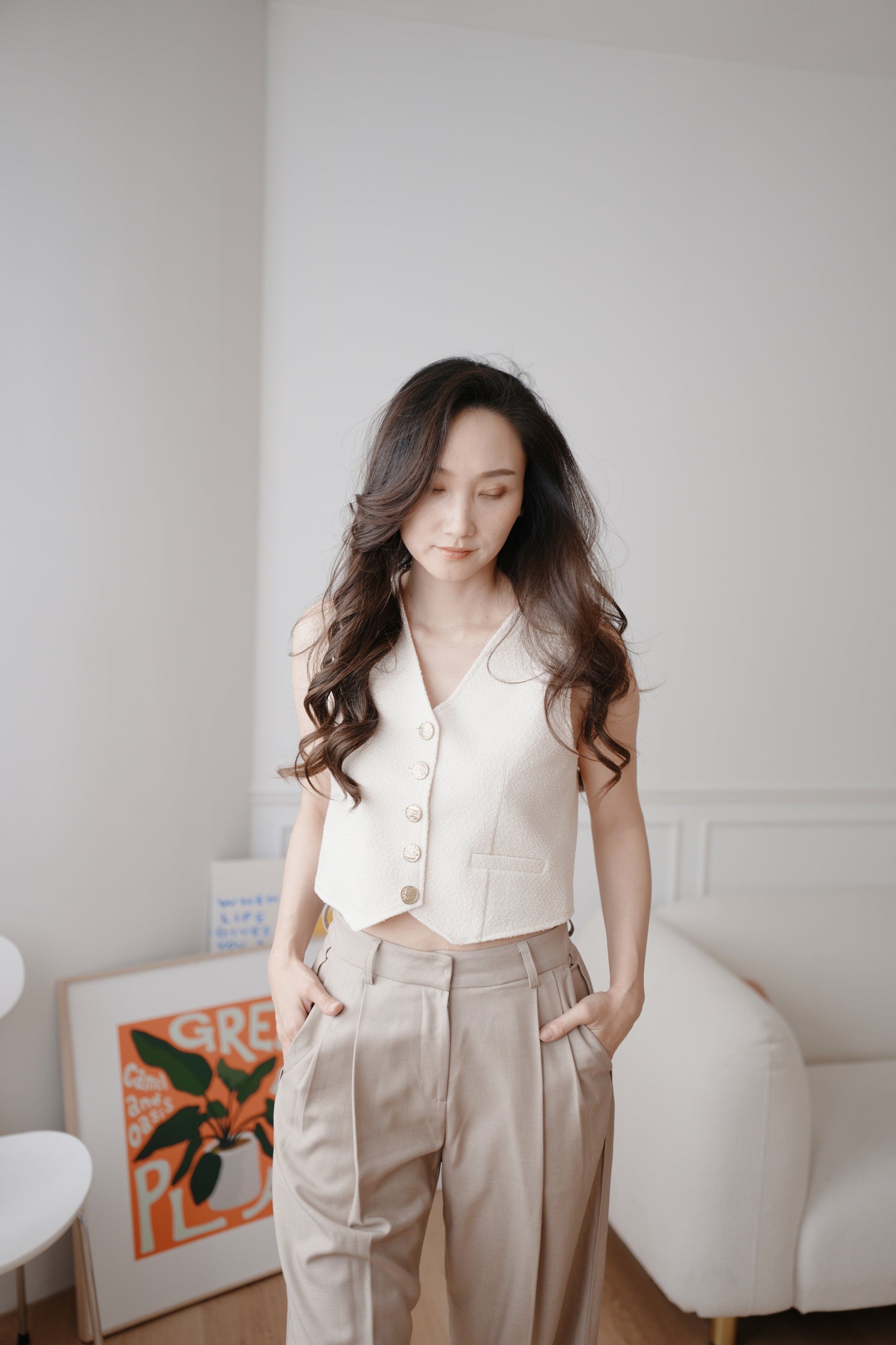 小香毛呢短版背心