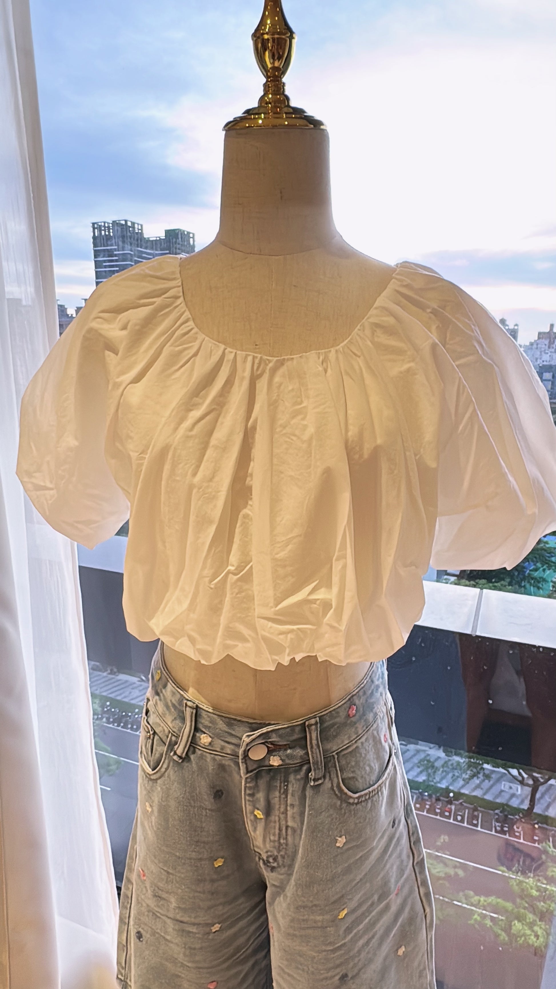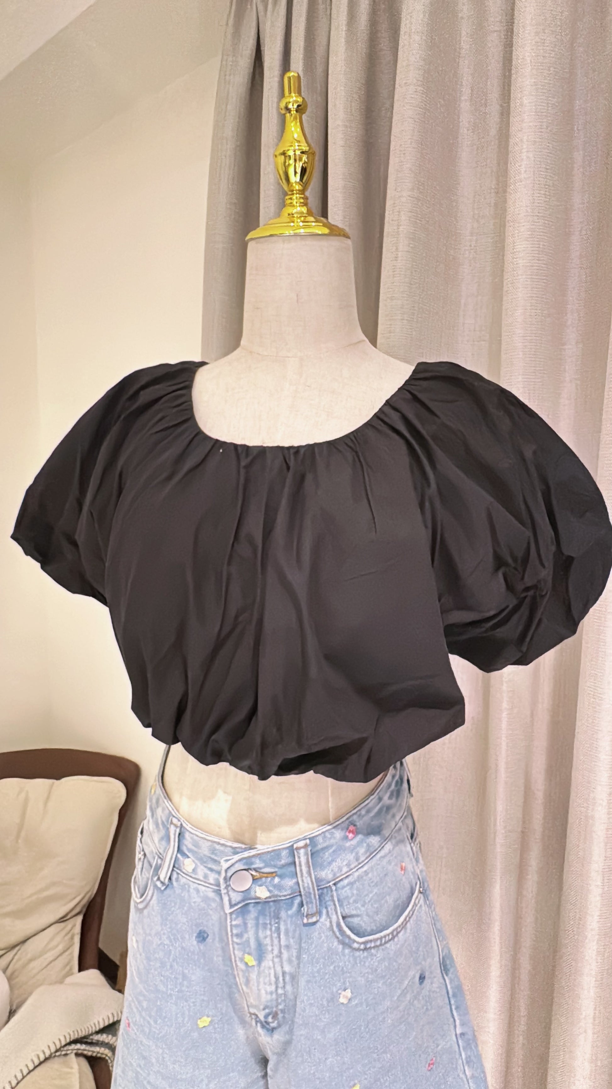性感短版澎袖上衣