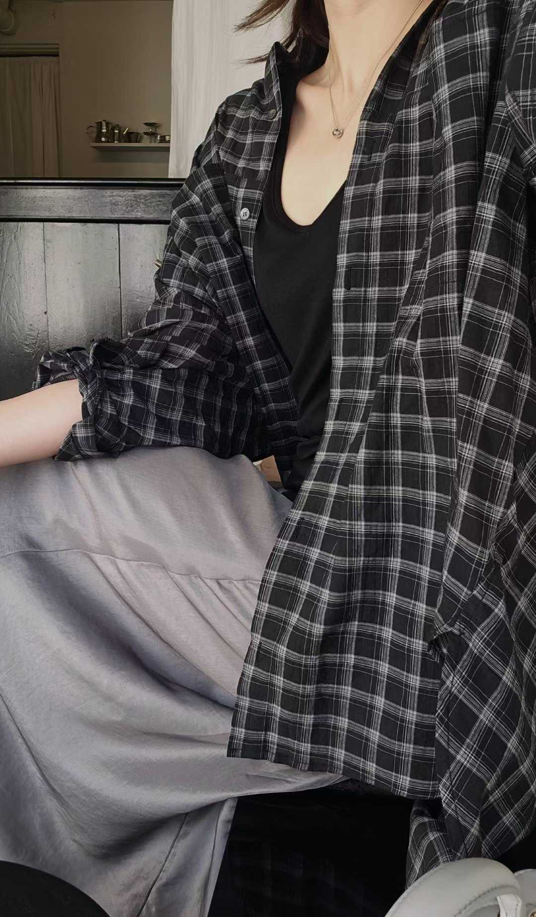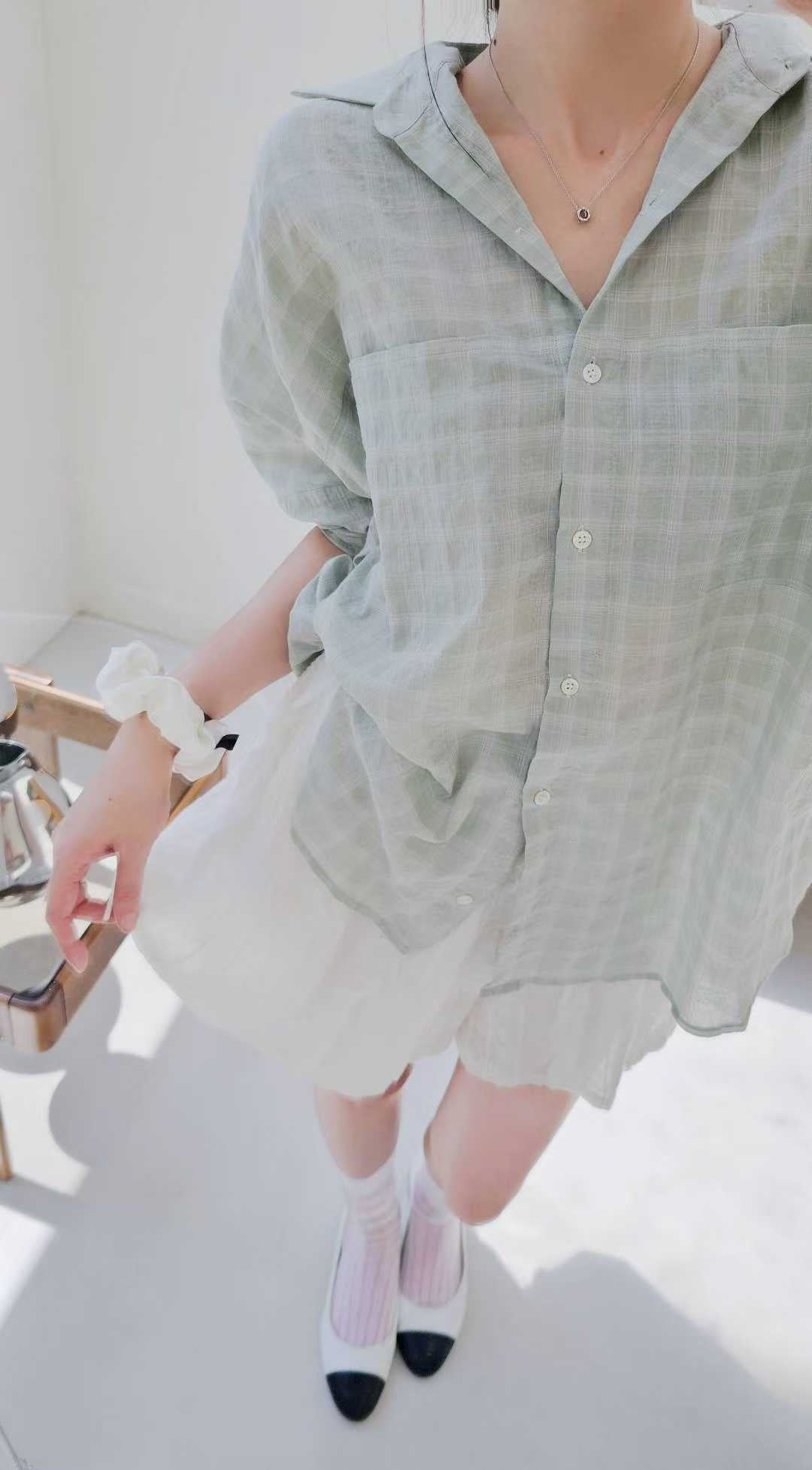 薄款面料,觸感柔軟親膚,質感珍珠母貝釦,寬鬆休閒版型,XS~XL可以穿